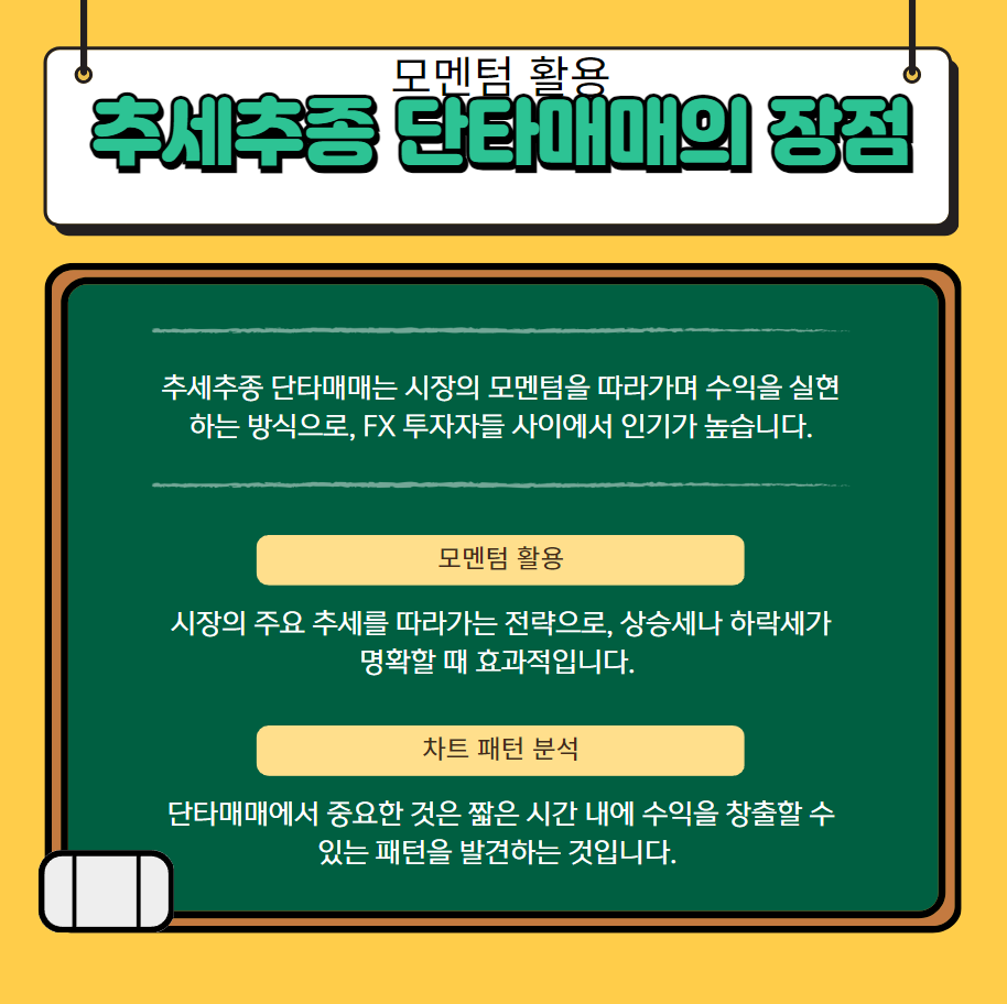 추세추종 단타매매는 시장의 모멘텀을 따라가며 수익을 실현하는 방식으로, FX 투자자들 사이에서 인기가 높습니다.