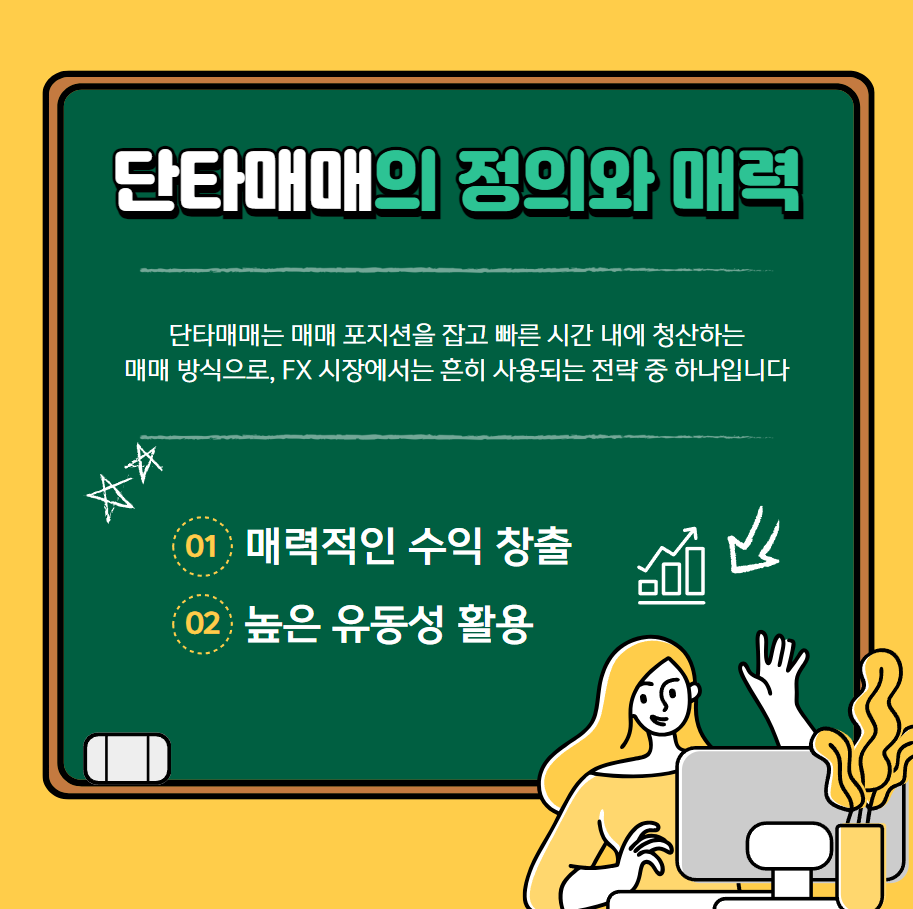 단타매매는 매매 포지션을 잡고 빠른 시간 내에 청산하는 매매 방식으로, FX 시장에서는 흔히 사용되는 전략 중 하나입니다. 특히 스캘핑은 단타매매 중에서도 수초에서 몇 분 내에 거래를 완료하는 초단기 매매 기법을 의미합니다.