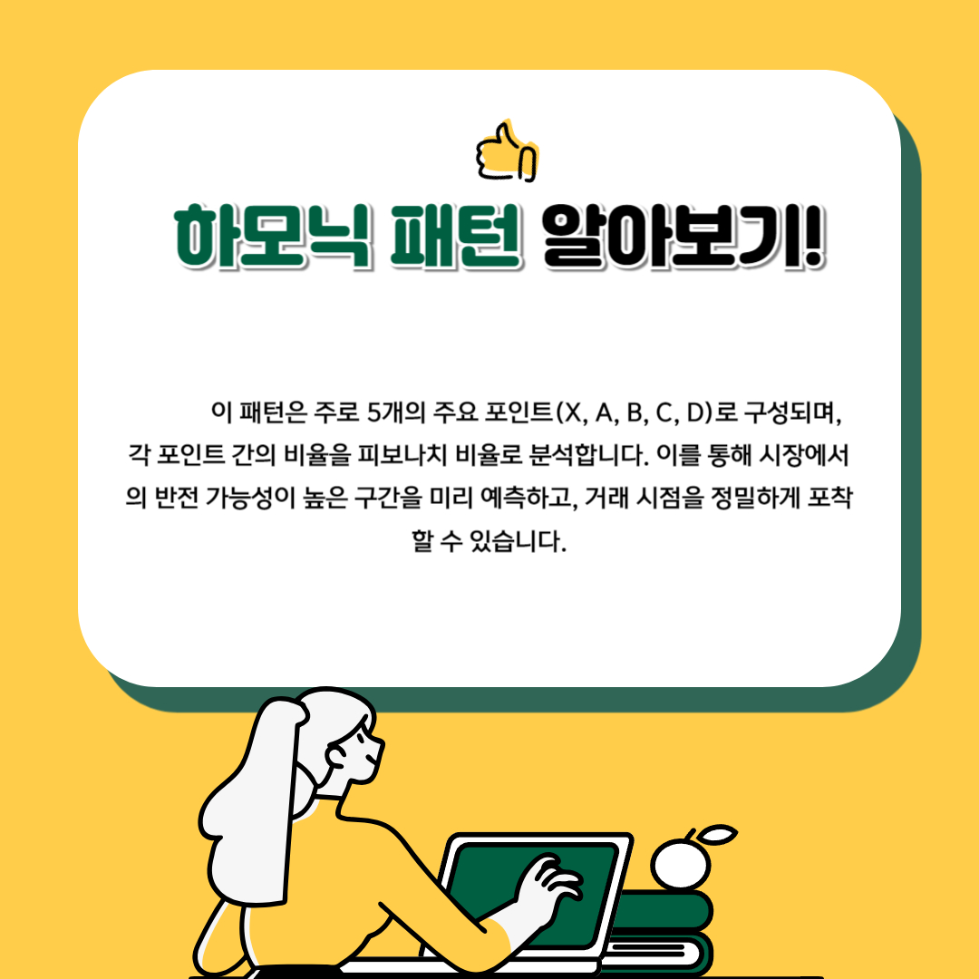 이 패턴은 주로 5개의 주요 포인트(X, A, B, C, D)로 구성되며, 각 포인트 간의 비율을 피보나치 비율로 분석합니다. 이를 통해 시장에서의 반전 가능성이 높은 구간을 미리 예측하고, 거래 시점을 정밀하게 포착할 수 있습니다.