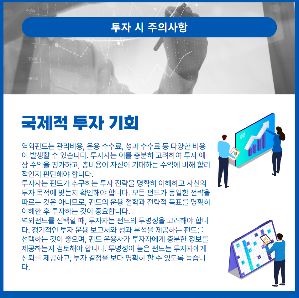 투자자는 펀드가 추구하는 투자 전략을 명확히 이해하고 자신의 투자 목적에 맞는지 확인해야 합니다. 모든 펀드가 동일한 전략을 따르는 것은 아니므로, 펀드의 운용 철학과 전략적 목표를 명확히 이해한 후 투자하는 것이 중요합니다.