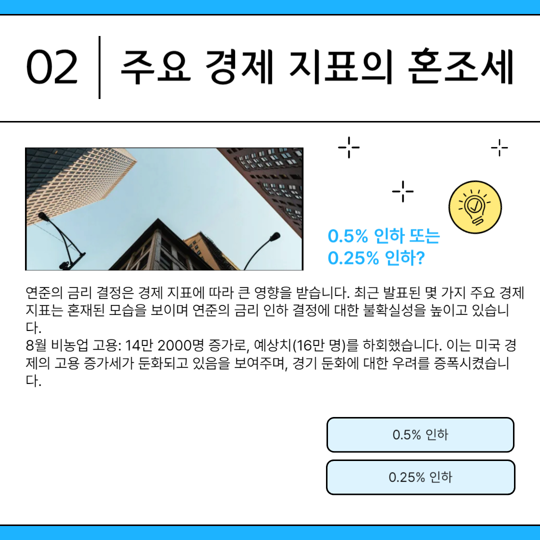 1. 연준의 선택: 0.5% 인하 또는 0.25% 인하?