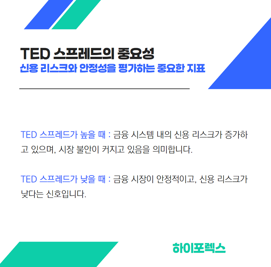TED 스프레드는 금융 시장의 리스크 수준을 평가하는 주요 지표로 사용됩니다.